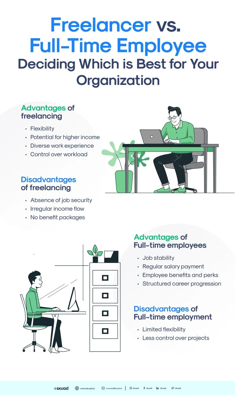 The decision to hire either a freelancer or a full-time employee depends on the nature of the task at hand, its recurrence, and the organization’s goals. By carefully evaluating the pros and cons of each employment type, you can make an informed decision about your organization’s hiring direction.
